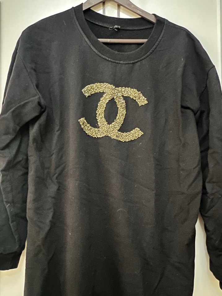 Kadınlar için uzun kollu, yuvarlak yakalı, bol kesim ve normal midi uzunlukta siyah payetli sweatshirt. Sentetik kumaştan, parlak siyah renkte ve önünde payetli baskı deseni bulunur. ✨