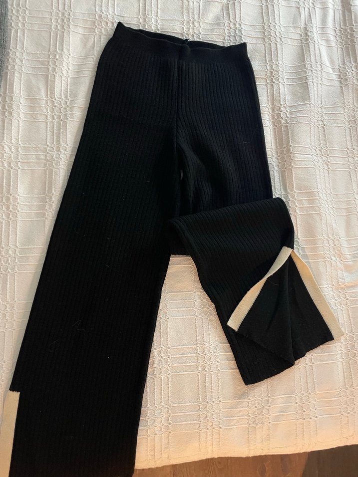 Kadınlar için siyah pilili kumaş pantolon, normal kesim ve midi boyda, yumuşak sentetik kumaştan. Günlük rahat şıklık için uygundur.