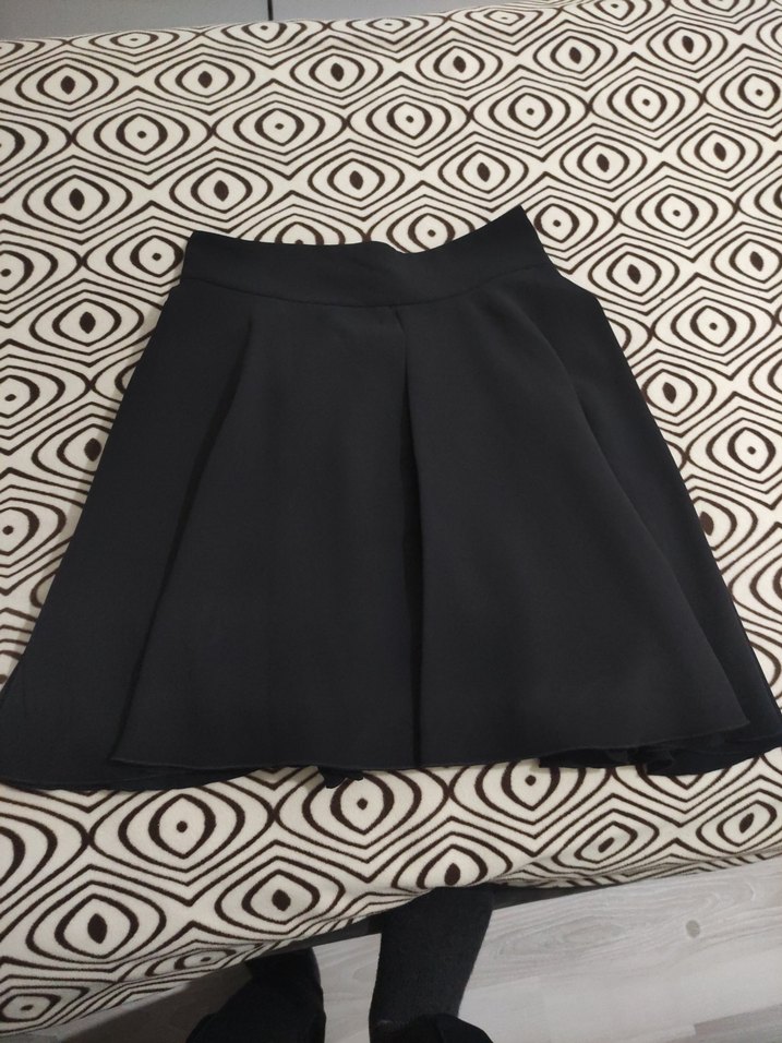 Kadınlar için siyah midi uzunlukta, pileli ve dar kesim sentetik kumaştan yapılmış etek, ofis kullanımı için uygun.