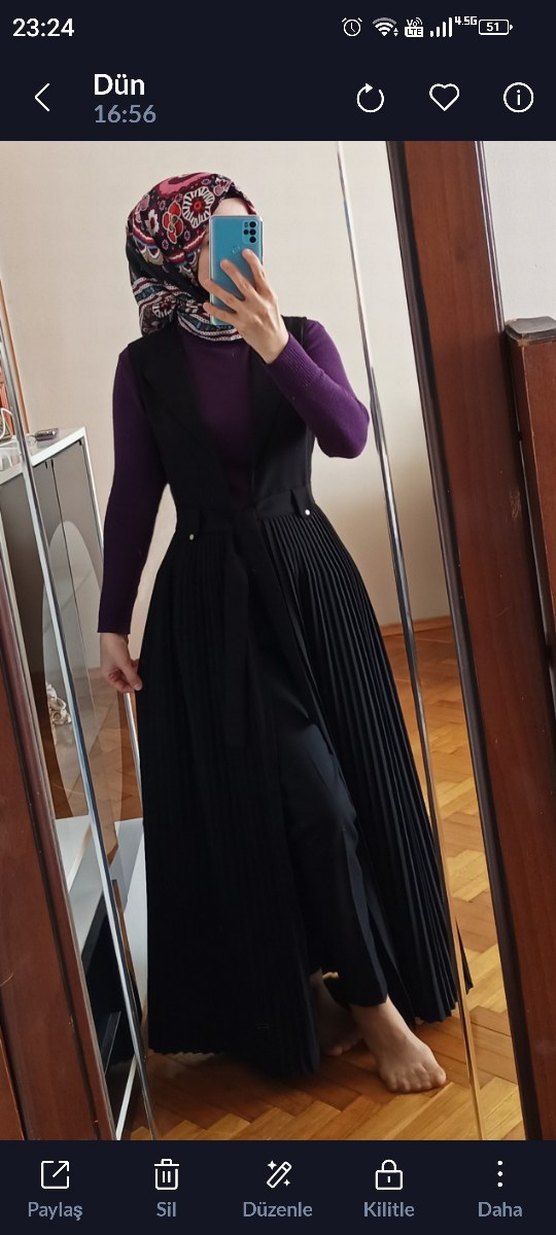 Kolsuz, siyah uzun yelek, pileli etek kısmına sahiptir. çok kaliteli kumaştan yapılmış, regular fit model . yepyeni pırıl pırıl
