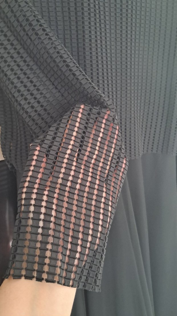 Sentetik kumaştan yapılmış, pilili detaylara sahip siyah, vücuda oturan midi pantolon. Günlük kullanıma uygun çağdaş ve avangart tarz sunar.