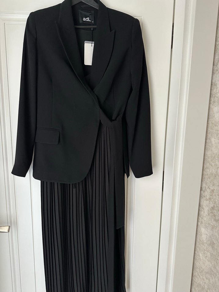 Kadın Siyah Pilili askılı elbise ve ceket takım