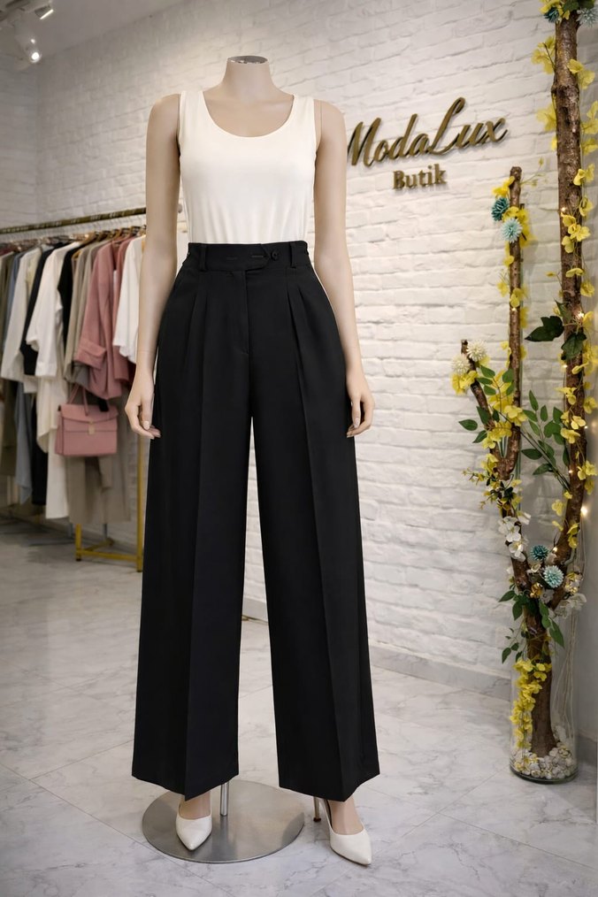Kadınlar için regular fit, pilili detaylı, ipeksi dokulu kumaş pantolon. Midi boy, minimalist ve çağdaş tarzda. Koyu renk şık bir görünüm sunar.