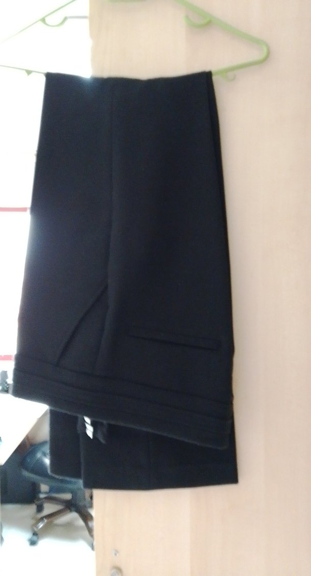 Kadınlar için siyah, pilili, midi boyda ve normal kesim kumaş pantolon. Sentetik kumaştan üretilmiş, ofis ve günlük kullanıma uygundur.