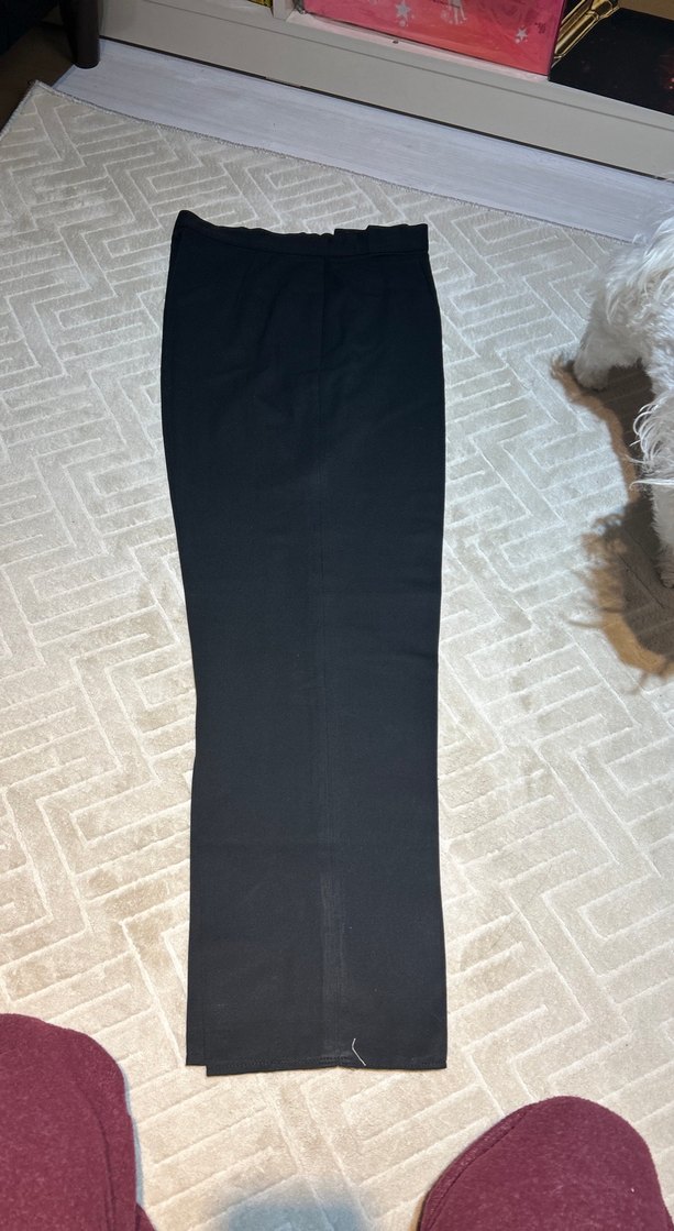 Kadınlar için siyah, düz, pilili kumaş pantolon. Normal kesim ve uzun boy, iş ortamına uygun sade tasarım. Sentetik kumaştan üretilmiştir. Boy 100 cm