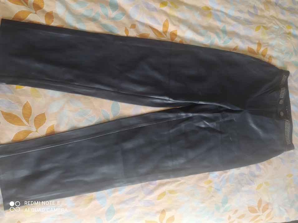 Kadınlar için siyah, pilili, uzun paçalı, regular fit kumaş pantolon. Sentetik kumaştan yapılmış, sokak stili ve açık hava kullanımı için uygun.