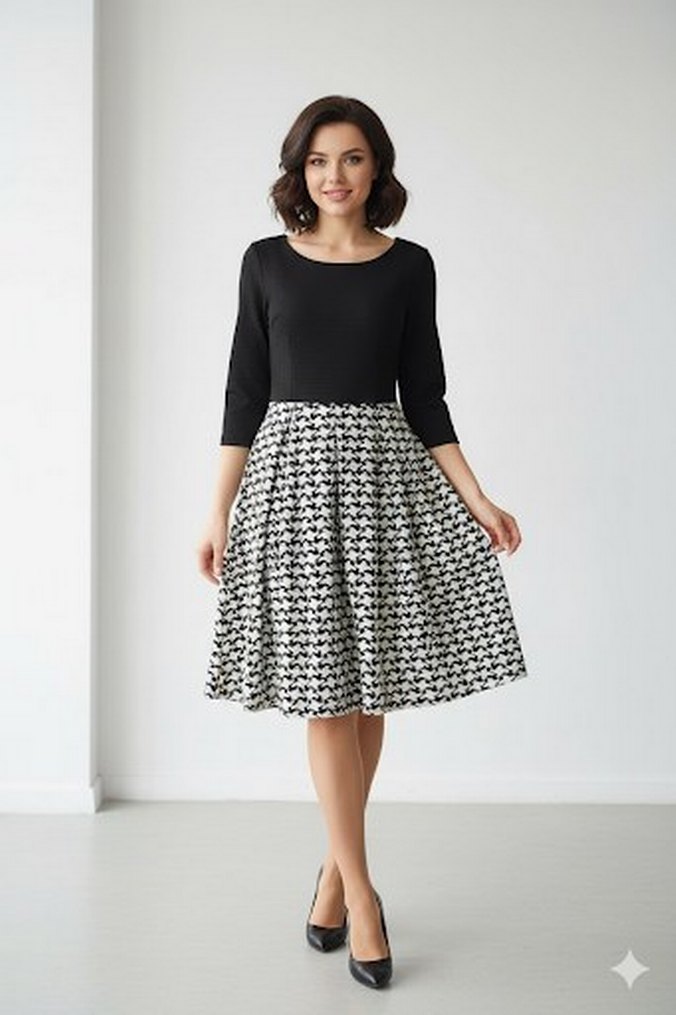 Kadınlar için pamuk kumaştan, pilili detaylara sahip, bol kesim midi uzunlukta siyah renkte etek. Ofis için uygundur.