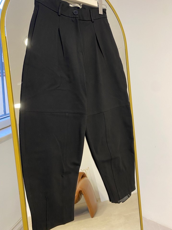 Kadın Siyah Pilili Midi Kumaş Pantolon