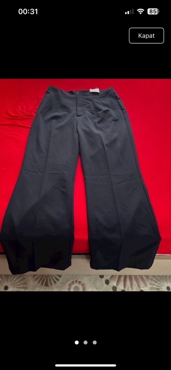 Kadınlar için siyah pilili midi kumaş pantolon, sentetik yumuşak kumaştan, normal kesim ve ofis ile sokak tarzına uygun.40,42bedene olur