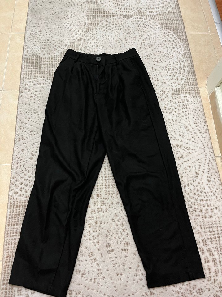 Kadın Siyah Pilili Midi Kumaş Pantolon