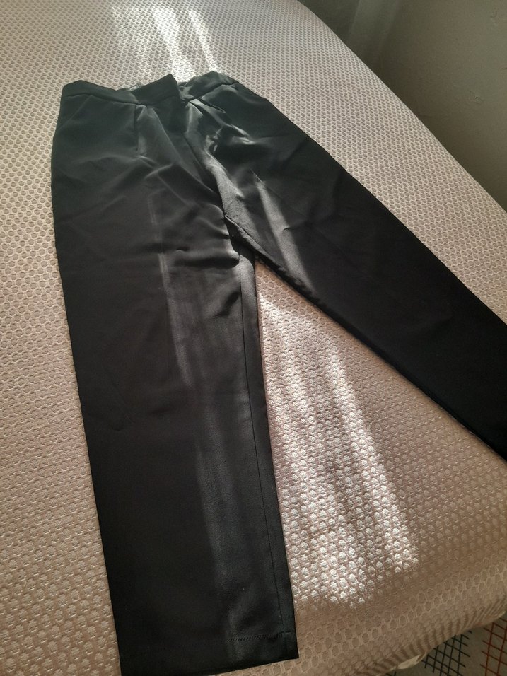 siyah kumaş pantolon, normal kesim ve midi boyda, pile detaylı.bi iki kere giymişimdir