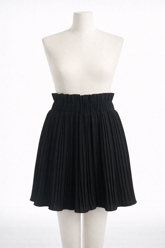 Kadınlar için siyah, pilili ve vücuda oturan mini etek. Sentetik kumaştan yapılmış, günlük kullanıma uygun goth tarzında şık bir model.