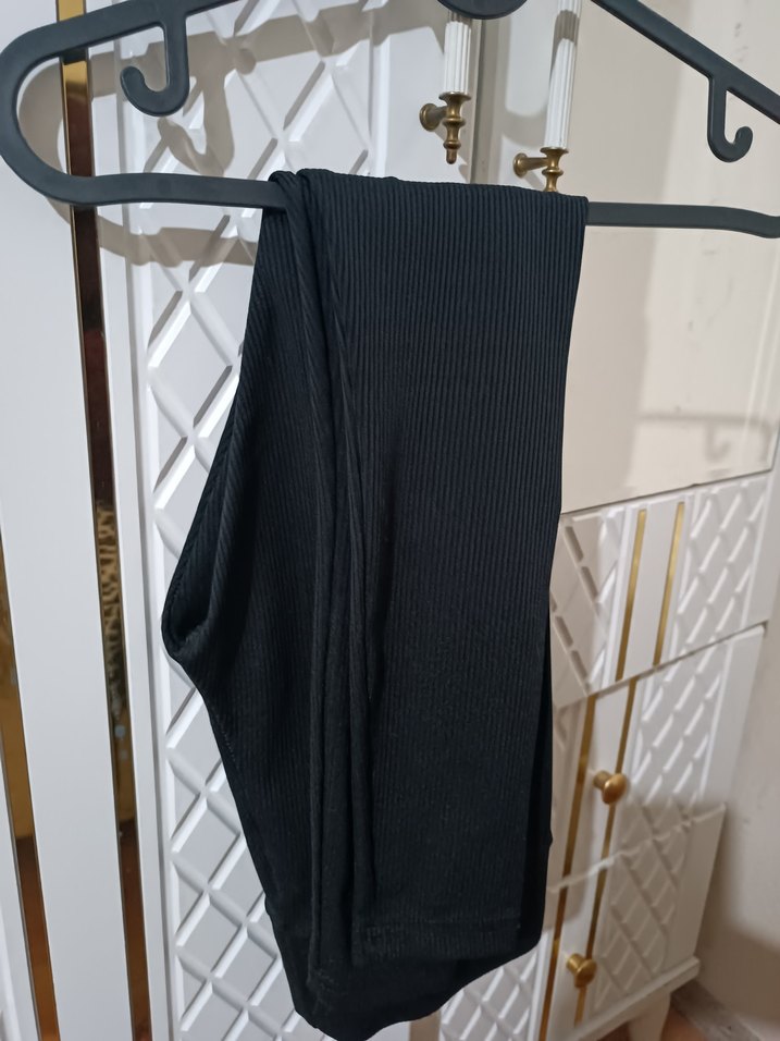 Kadınlar için fitilli, normal boy midi siyah tayt Yumuşak sentetik kumaştan, rahat ve trend günlük stil sunar.