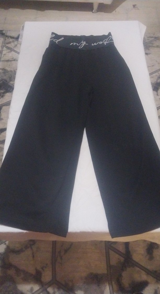 Siyah pilili, bol kesim kumaş eşortman, rahat bel bandı ile günlük kullanıma uygun, trend sokak stili için ideal.