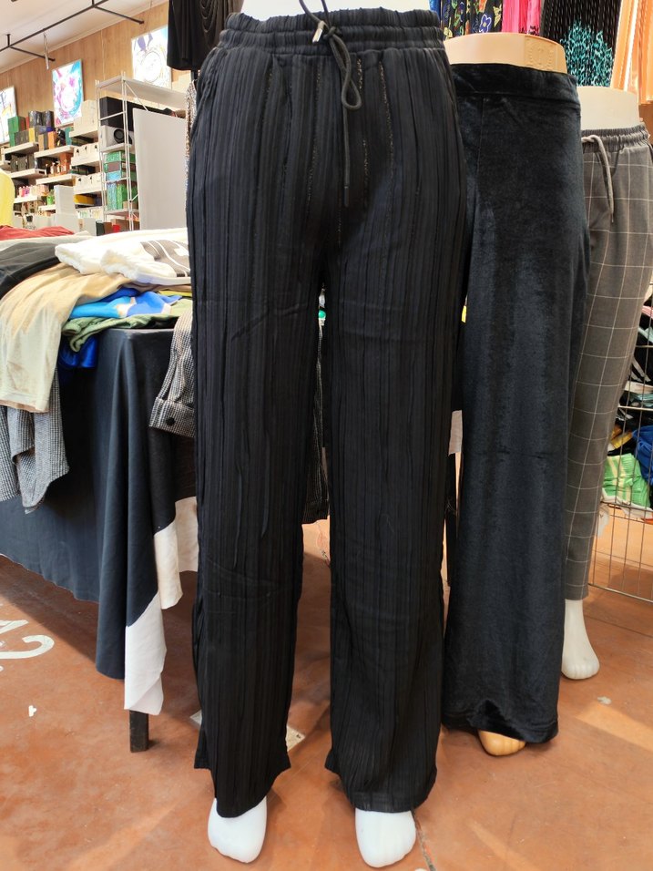 Siyah kumaştan, pile ve bol kesim uzunlukta rahat günlük kullanım için uygun pantolon. Günlük rahat sokak stiline uygundur.