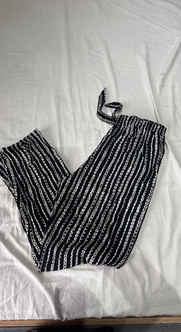 Kadınlar için uzun siyah bağlama desenli kumaş pantolon, pilili ve salaş kesim, günlük sokak stili için minimalist tasarım.