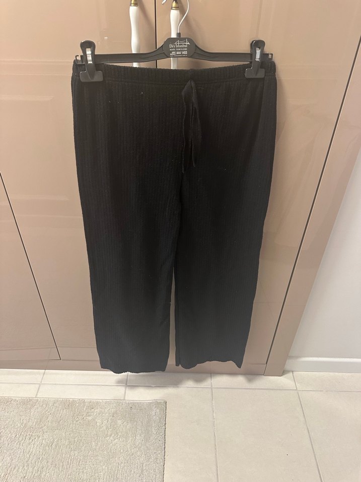 Salaş kesim, pilili siyah pantolon, midi boy, rahat ve konforlu sokak stili için uygun. Günlük kullanım için ideal. Sıfır ürün