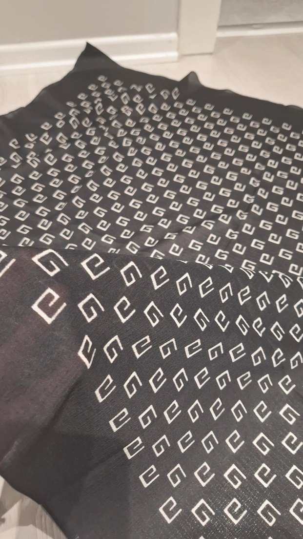 Siyah renkte, pilili ve sokak stiline uygun desenli kadın eşarp yumuşak sentetik kumaştan üretilmiştir.