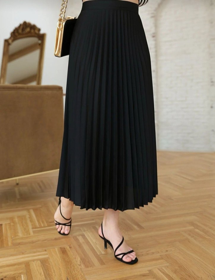 Kadın Siyah Pilili Uzun Etek
