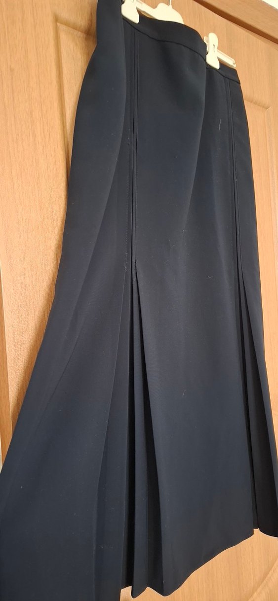 Kadınlar için pilili uzun etek, düz kesim ve sentetik kumaştan üretilmiştir. Koyu siyah rengi ve minimal tarzı ofis kullanımı için uygundur.