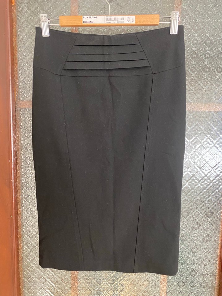 Siyah uzun kalem etek, pilili detaylı ve düz desensiz. Sentetik, düzgün dokulu kumaştan üretilmiş, ofis için uygun goth tarzında ve regular fit.