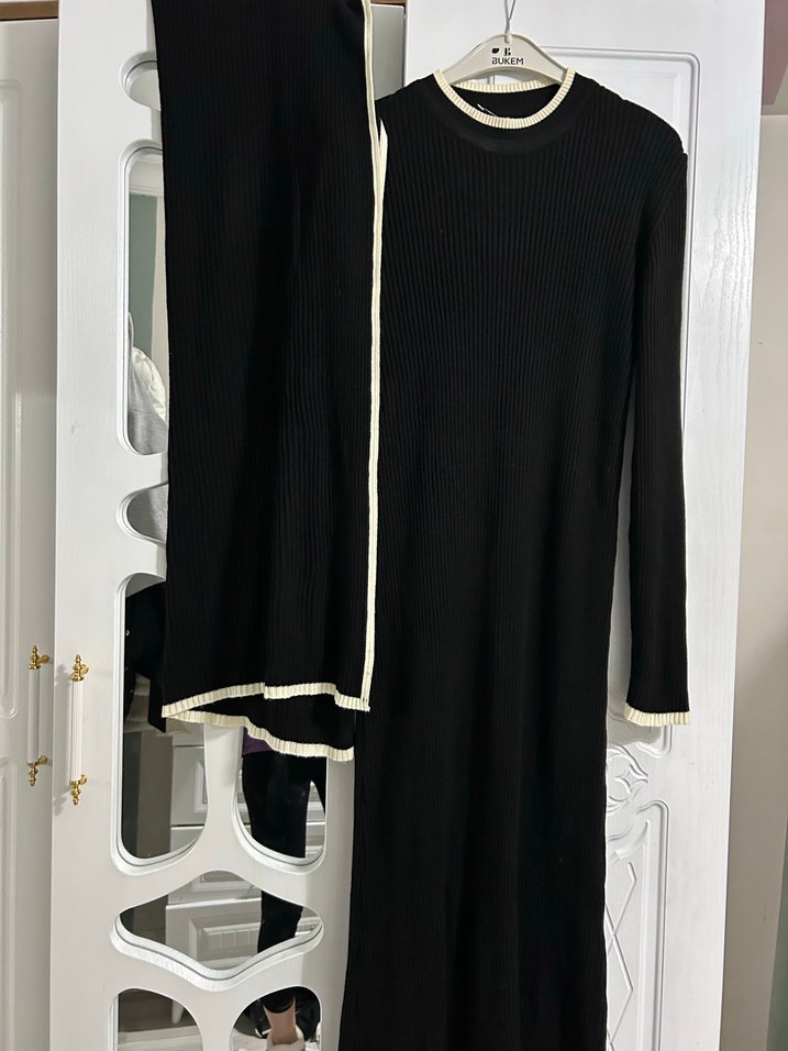 Kadın Siyah Pilili Uzun Kollu Elbise takım