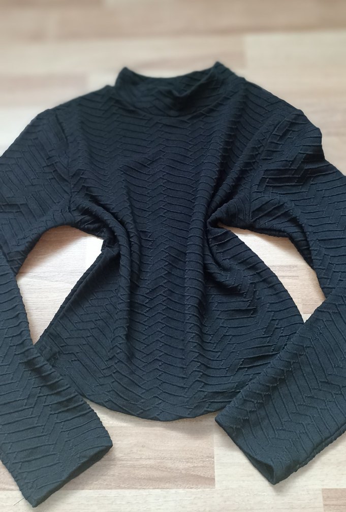 Kadınlar için yüksek yakalı, uzun kollu ve vücuda oturan siyah pilili triko. Sentetik kumaştan, günlük ve sokak modasına uygun. hadiseden almıştım