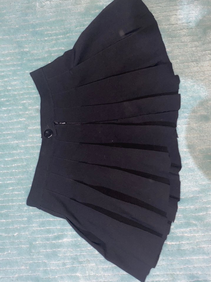 Düz siyah, pilili, vücuda oturan midi etek, sentetik kumaştan hazırlanmış, gotik tarz için uygun. ama aşırı mini