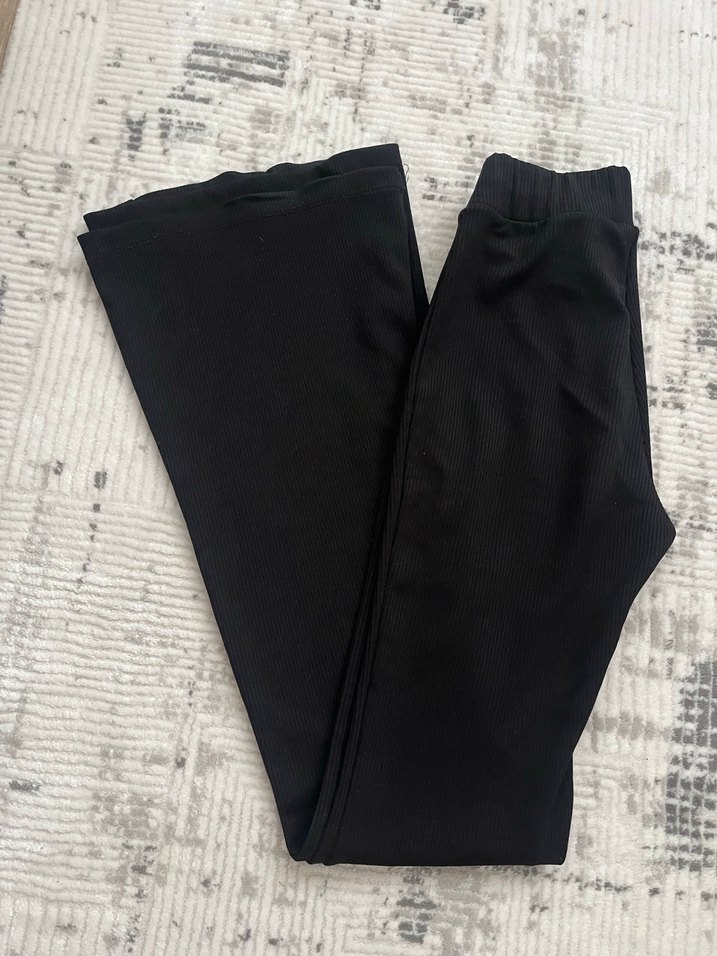 Kadın siyah piliseli, dar kesim, midi boy tayt . Sentetik kumaştan, gündelik ve rahat kullanıma uygun.