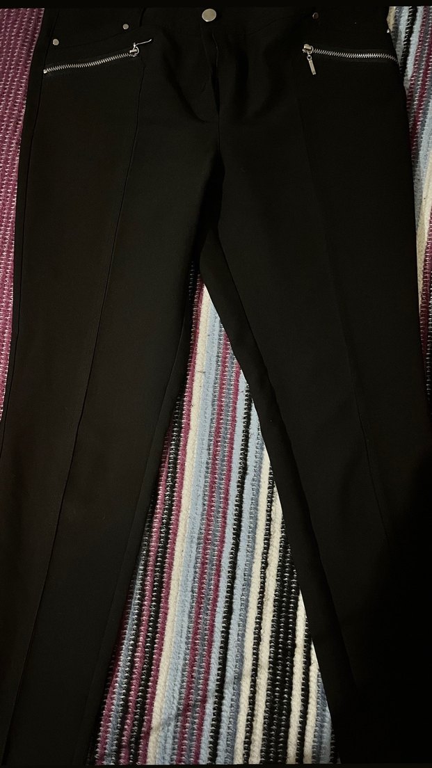 Sentetik kumaştan yapılmış, piliseli detaylı, midi boy, dar kesim siyah kumaş pantolon. Ofis için normcore tarzda.