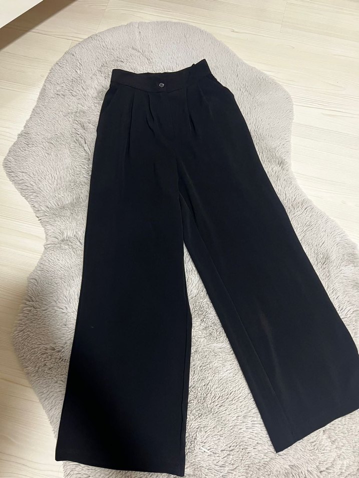 Kadınlar için siyah piliseli kumaş pantolon. 32 bedene gore daralttirilmistir. Hicbir problemi yoktur. Boyum 165. ona gore yapilmistir.
