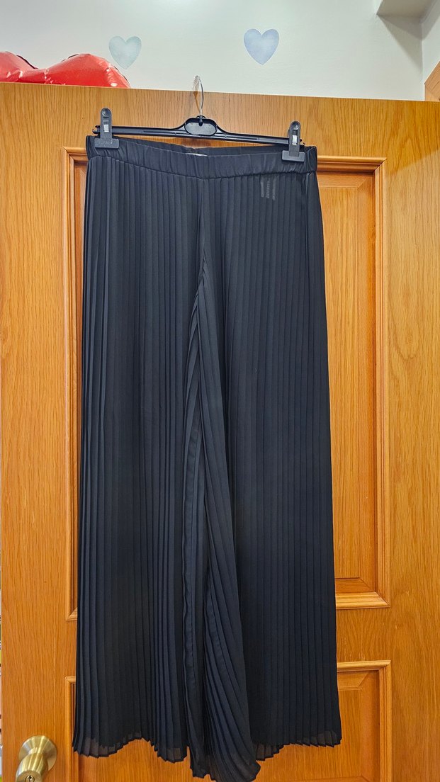 Kadın Siyah Piliseli Kumaş Pantolon