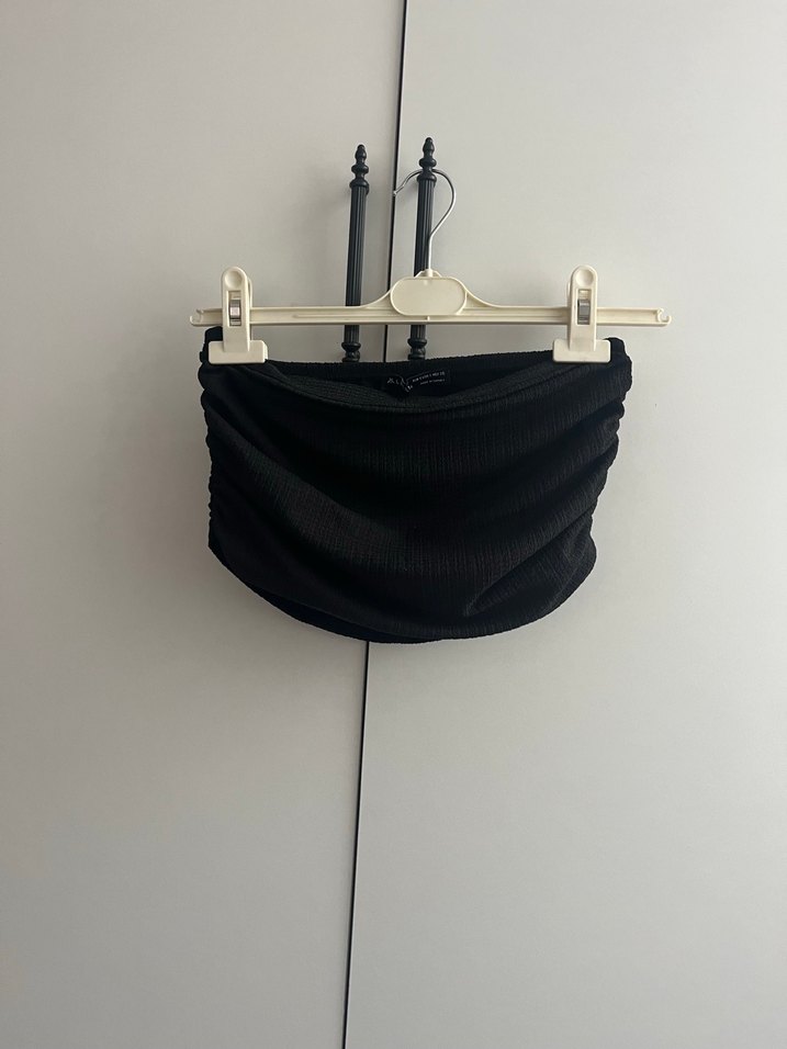 Kadın Siyah Piliseli Kumaş Pantolon ve Straplez Üst Takım