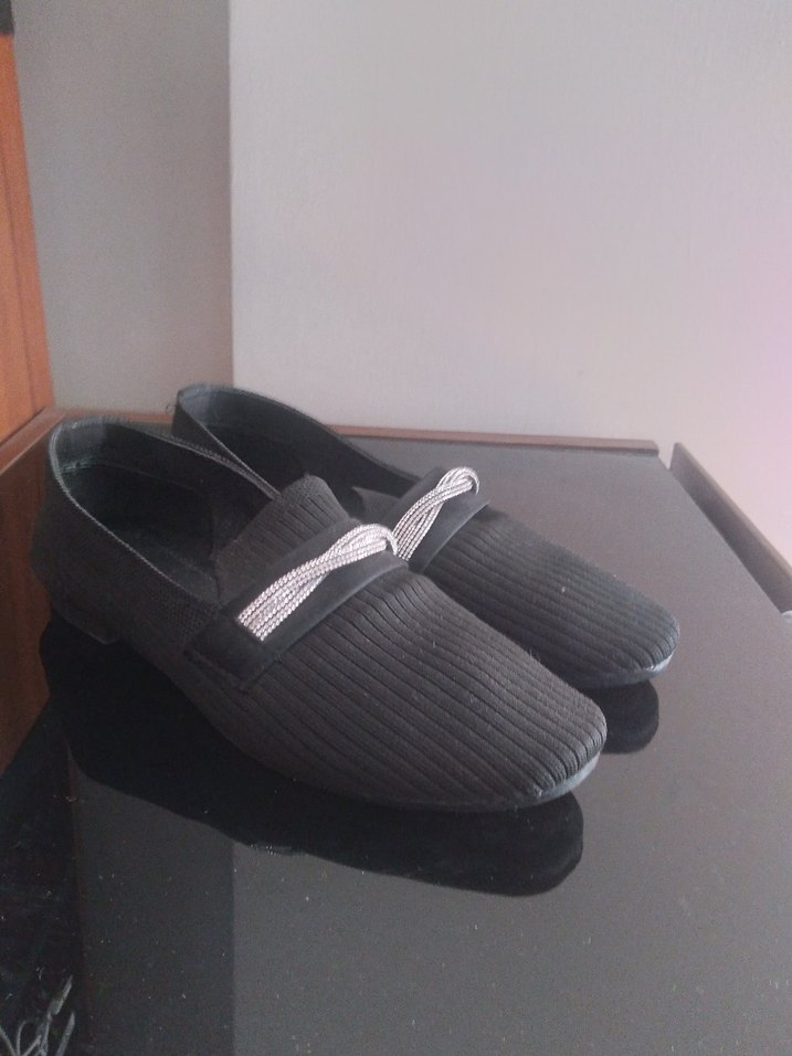 Kadınlar icin siyah, piliseli ve gri detaylı, dayanıklı kauçuk malzemeden babet. 38 numara