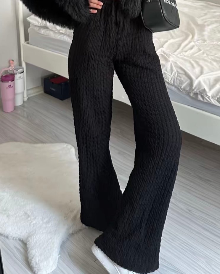 Kadın Siyah Piliseli Rahat Kumaş Pantolon