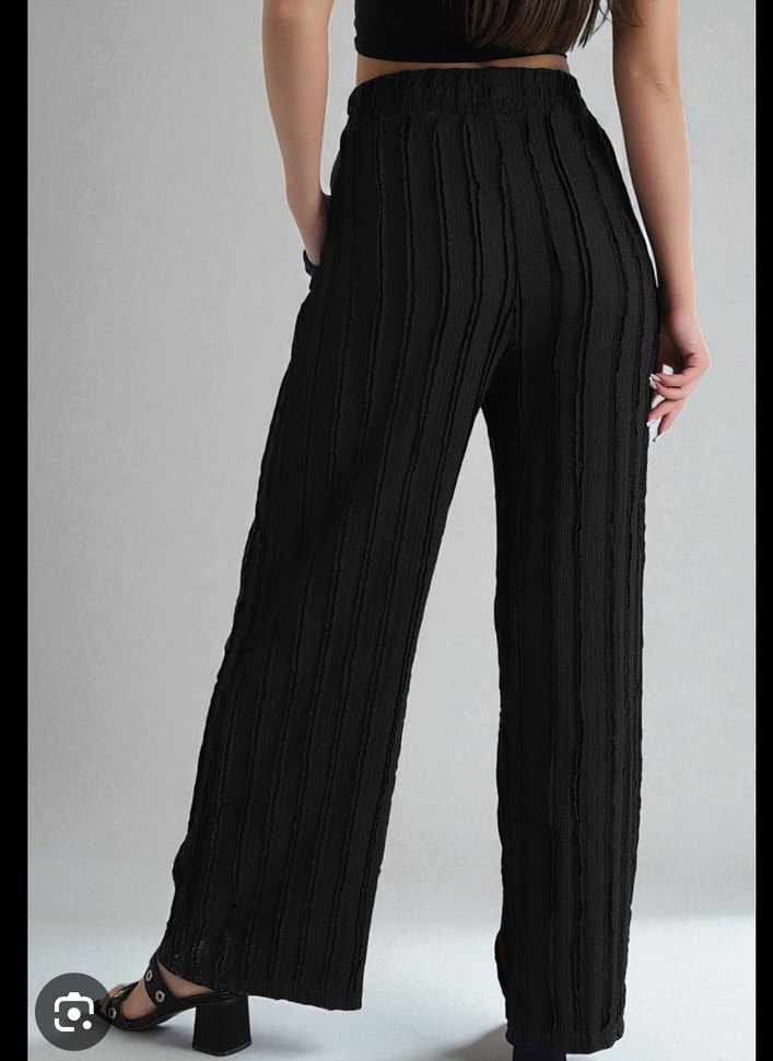 Siyah piliseli, salaş kesim uzunlukta kadın pantolon. Rahat ve şık sokak tarzına uygun, günlük kullanıma ideal. m beden aynı zamanda duruşu cok guzel paçasının boyu gayet ideal yukarıda deıl sadece fotoğrafta topuklu gıydıgı ıcın yukarıda duruyor yuksek bel uzun boylularda tercıh edebilir