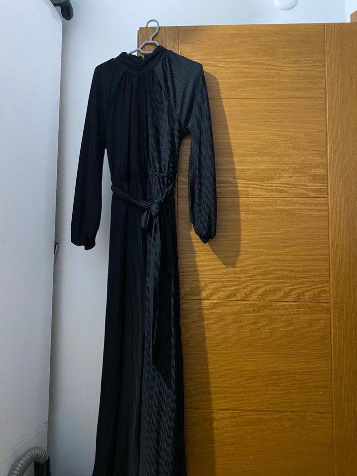 Kadın Siyah Piliseli Uzun Elbise