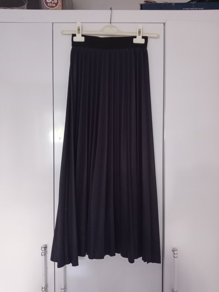 Siyah uzun piliseli etek, sentetik kumaştan ve bol kesimlidir. s m beden çok az giyildi. sıfır ayarında. dolabımı boşaltığım için satıyorum.