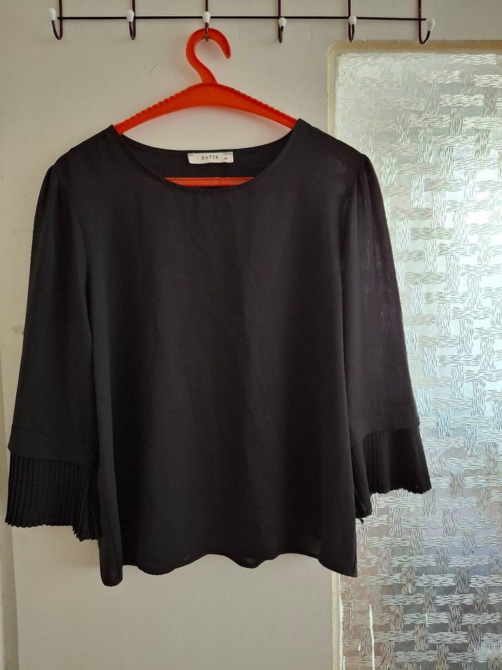 Kadın Siyah Piliseli Uzun Kollu Bluz