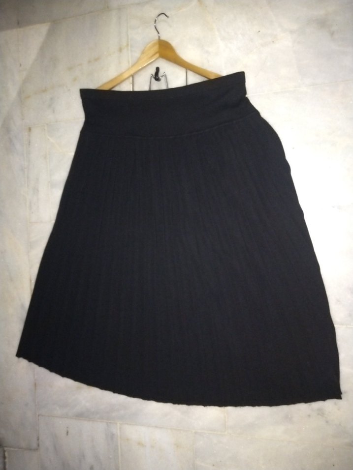 Siyah uzun piliseli Triko etek, bol kesimlidir ve nefes alabilen kumaştan yapılmıştır. Minimalist, gotik tarzı için uygundur.