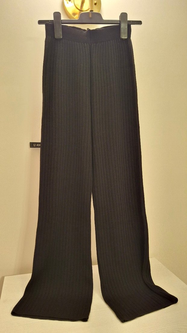Bu siyah kadın pantolon, piliseli tasarımı, regular kesimi ve uzun boyuyla yumuşak sentetik kumaştan üretilmiştir. Ofis için trend rahat stil sunar. Hiç giyilmedi ve defosuz.