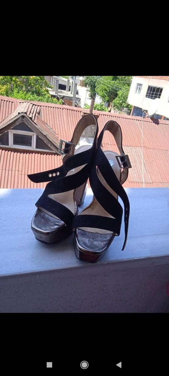 Kadınlar için tokalı bantlara ve kauçuk tabana sahip siyah platform topuklu ayakkabılar, romantik akşamlar için çağdaş tasarım.