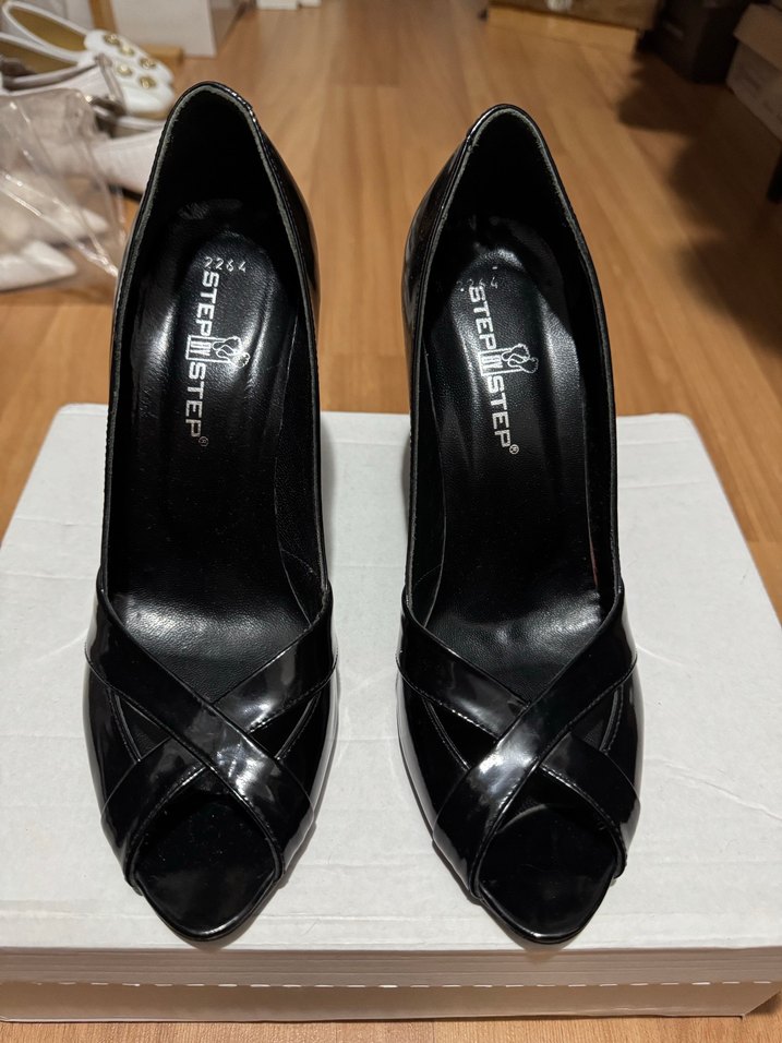 Siyah topuklu, cesur gotik stilettolar, ofis kullanımı 1 kez kullanıldı