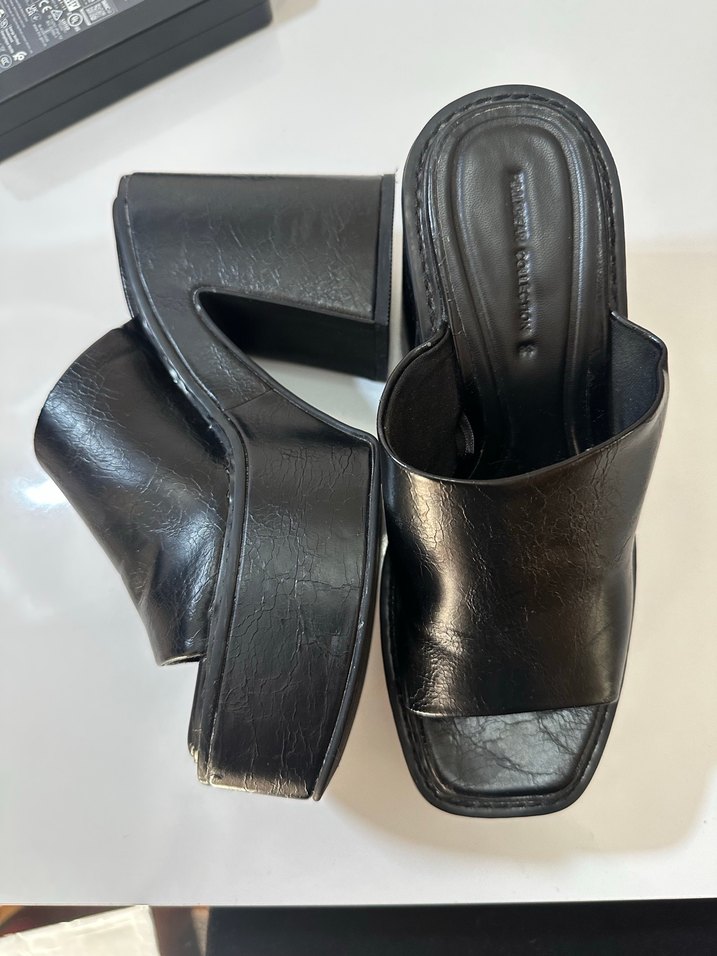 Siyah platform topuklu, tokalı ve lastik malzemeden yapılmış gotik tarzda kadın ayakkabısı. Günlük kullanım için uygun cesur tasarım. 12 cm