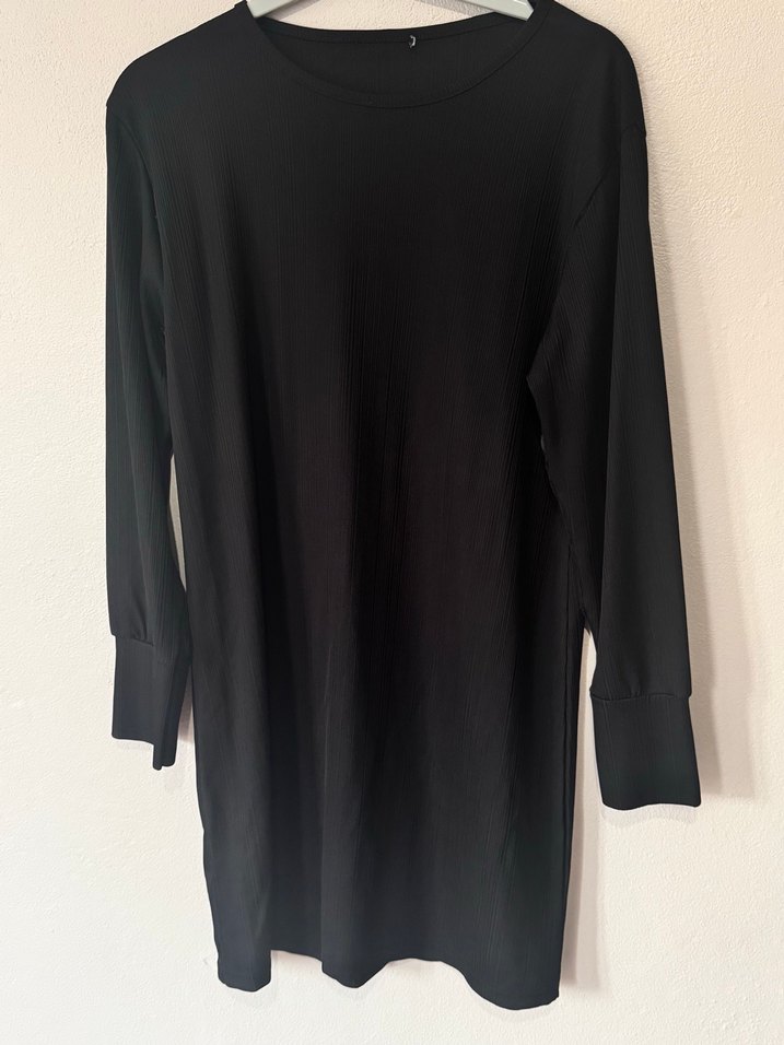 Siyah pliseli midi elbise, balıkçı yaka ve uzun kolludur. Yumuşak sentetik kumaştan yapılmış, günlük ofis kullanımı için uygun regular fit sunar. Minimalist ve şık tasarım.