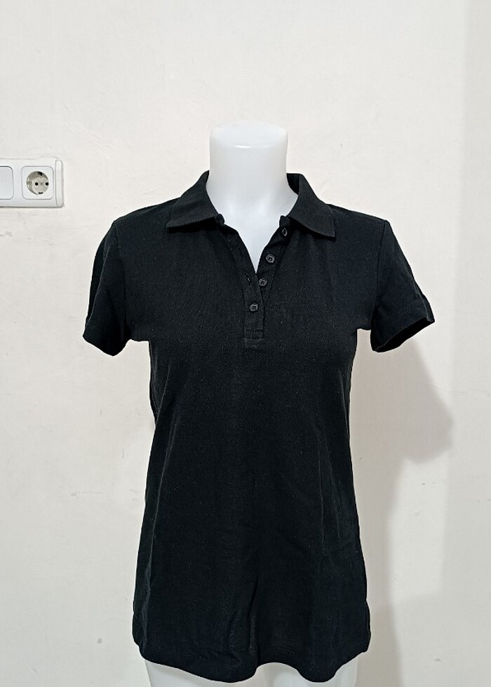 Kadın Siyah Polo Yaka Düğmeli Tişört