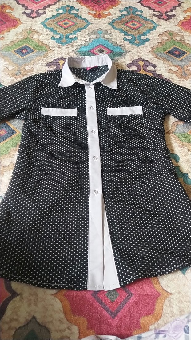 puantiyeli uzun ve kısa kollu kullanılabilen gömlek