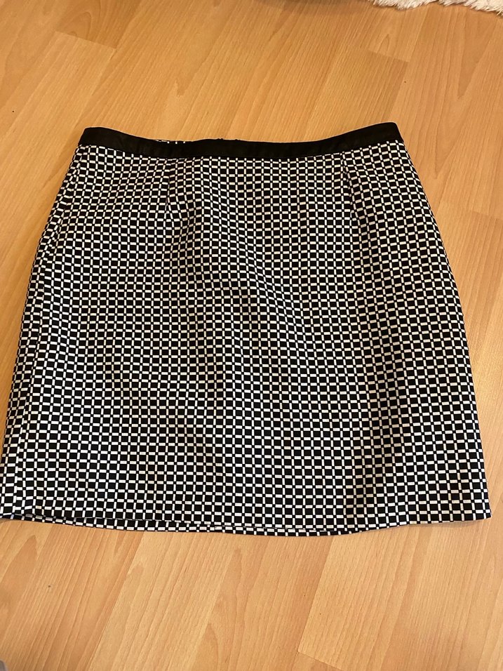 Bu kadın midi etek, siyah puantiyeli desene sahip, sentetik kumaştan üretilmiştir. Kemer detaylıdır ve ofis için çağdaş iş tarzına uygundur.