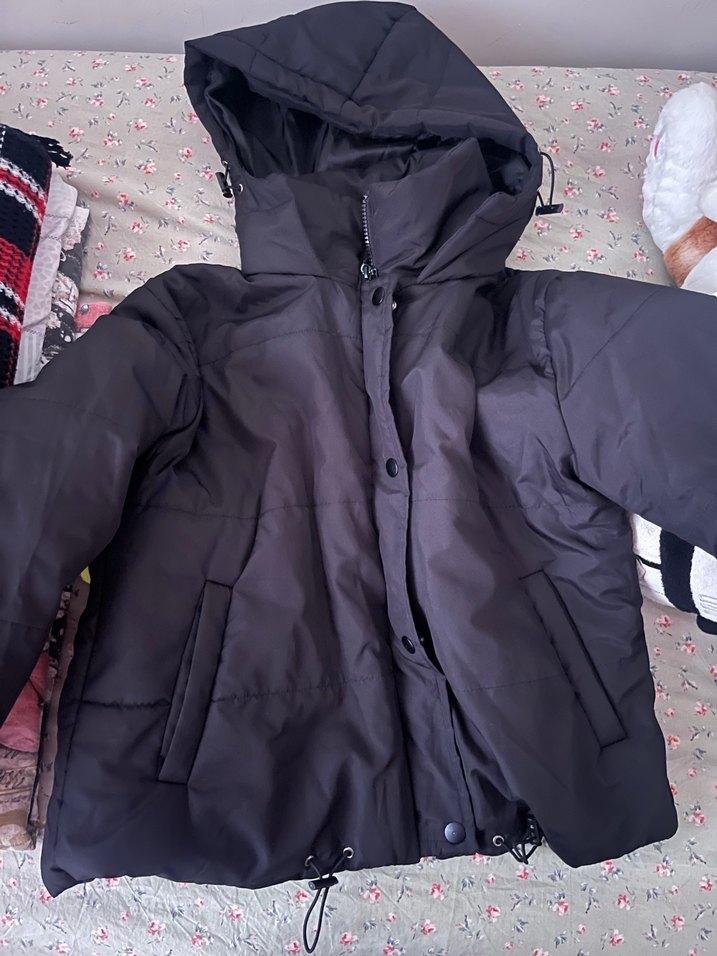 Bu siyah, ne dar ne geniş kesim kışlık mont, yüksek yakalı ve uzun puff kolludur, yumuşak ve sıcak kumaştan yapılmıştır. Günlük kullanıma uygundur.