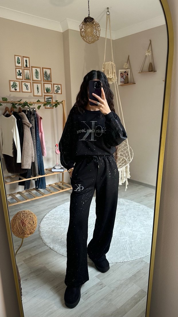 Kadın Siyah Pul Detaylı Calvin Clean Salaş Eşofman Takımı
